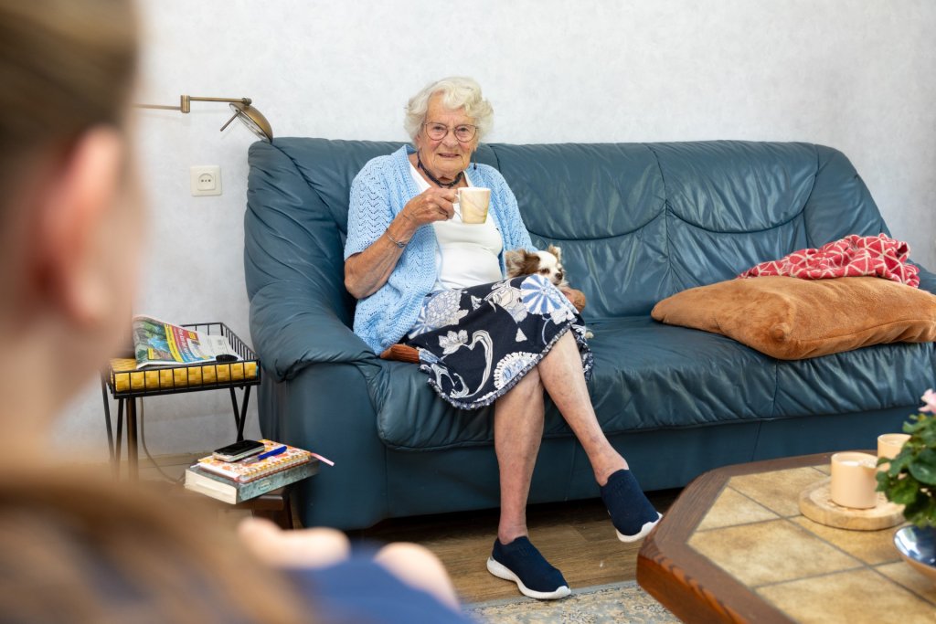 In een rustige straat in Driebergen-Rijsenburg woont Rijnie van der Kaaden, een vrouw van negentig. Na een leven in het onderwijs, samenwonend met een vriendin, en omringd door familie, werd het stil. Haar vriendin en oudste zus overleden, vrienden vielen weg en hoewel haar jongere zus dichtbij woont, voelde het huis leeg. 'Je mist iemand om even iets tegen te zeggen,' zegt Rijnie. 'Een stem in huis, een lach, gewoon het gevoel dat er iemand in de buurt is.'